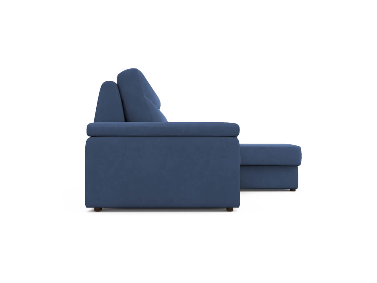 ELOY — это угловой диван с бельевым коробом в шезлонге, выполненный в европейском стиле. Он наполняет дом эстетикой минимализма и дарит круглосуточный комфорт, благодаря трем несъемным приспинным подушкам и механизму трансформации в спальное место “Дельфин”.